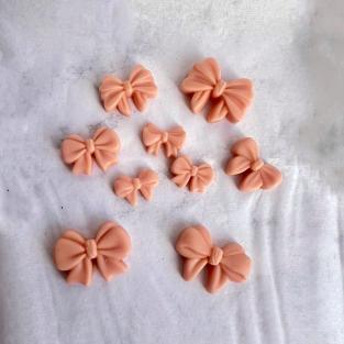 Фигурка из шоколадной глазури Бантики 1,5-2,5 см (9шт)100 руб.Состав: кондитерская глазурь (сахар, заменитель какао нетемперируемый лауринового типа (гидрогенезированное пальмоядровое масло, эмульгаторы: Е492, соевый лецитин), сухая мололочная сыворотка, носитель: карбонат кальция, эмульгатор лецитины: эмульгатор Е476, ароматизатор ванилин), красители (масло р...