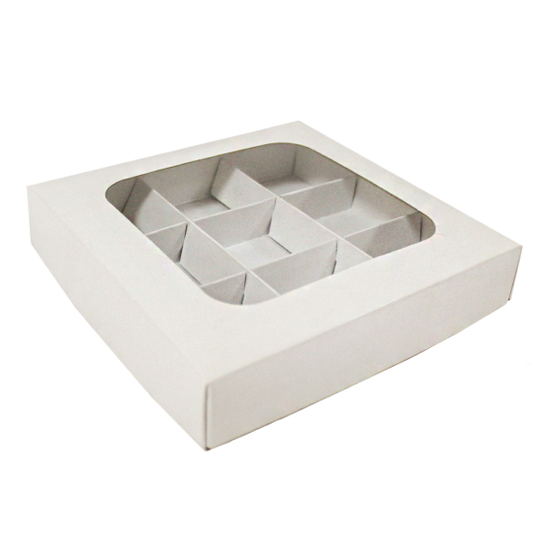 Коробка для конфет белая с окном 16 см*16 см*3 см (9)