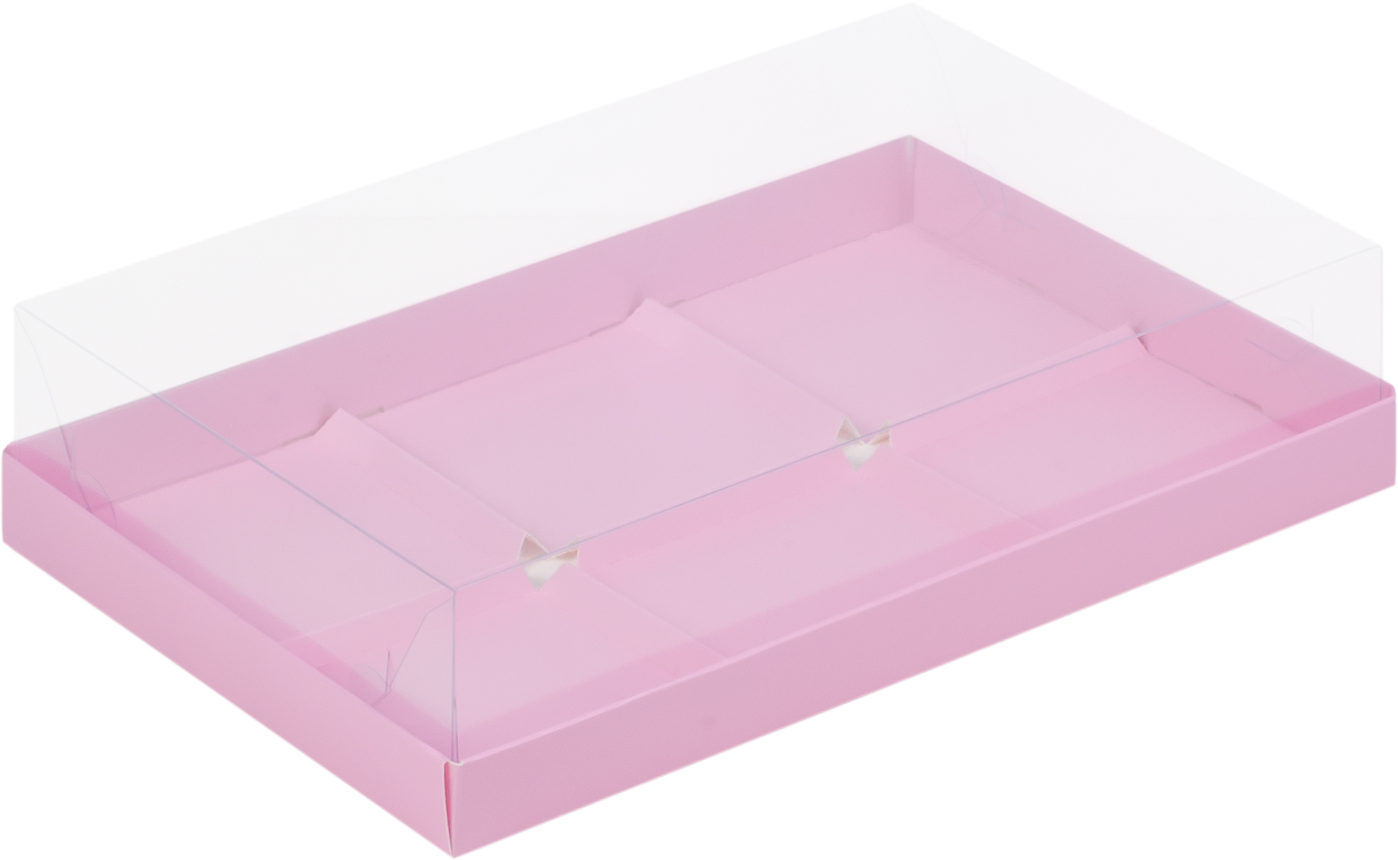 Коробка муссовые пирожные (кукис, cookies) (6), розовая матовая, 30*19,5*8 см с пластиковой крышкой