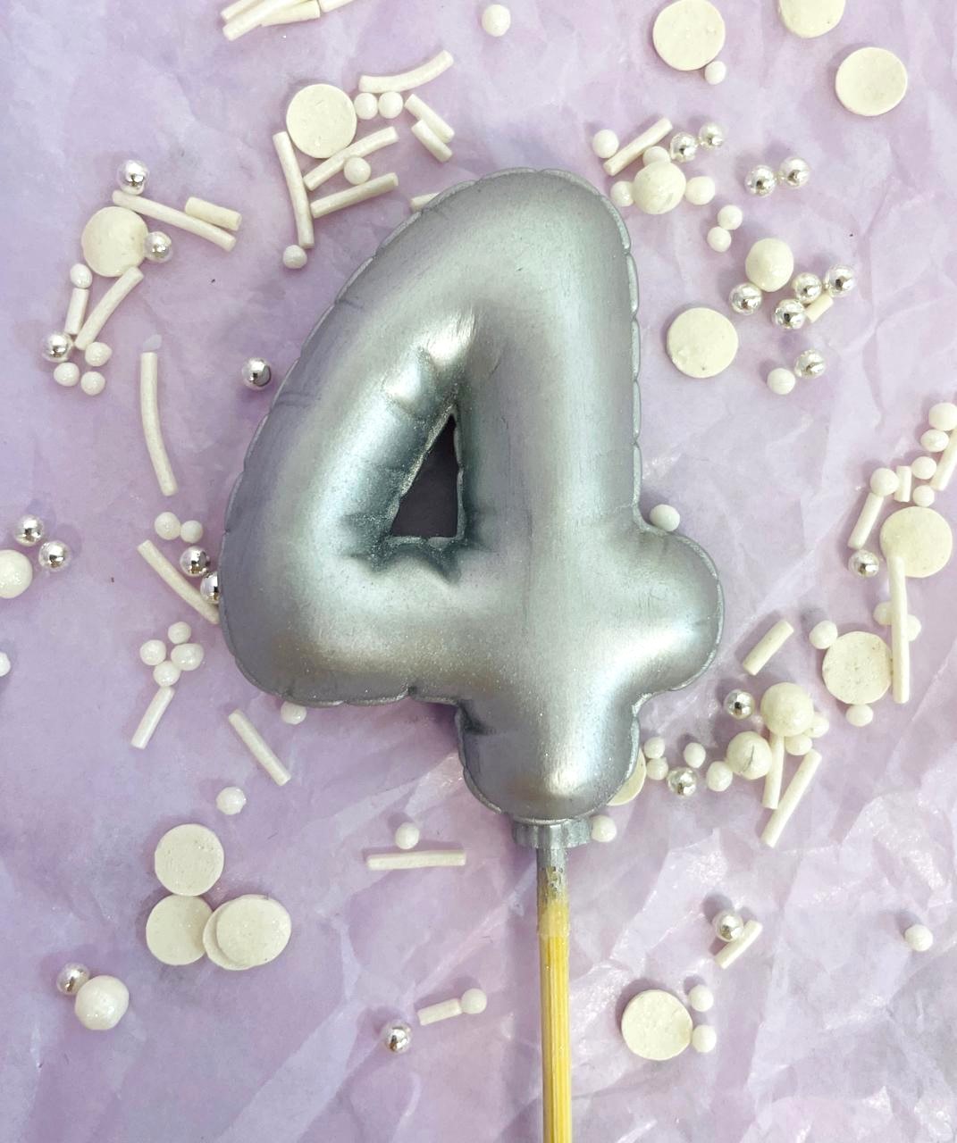 Фигурка из шоколадной глазури "Цифра-Шарик 4" серебро