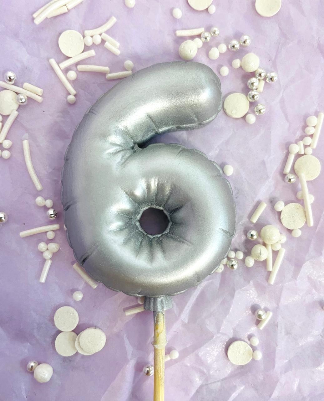 Фигурка из шоколадной глазури "Цифра-Шарик 6" серебро