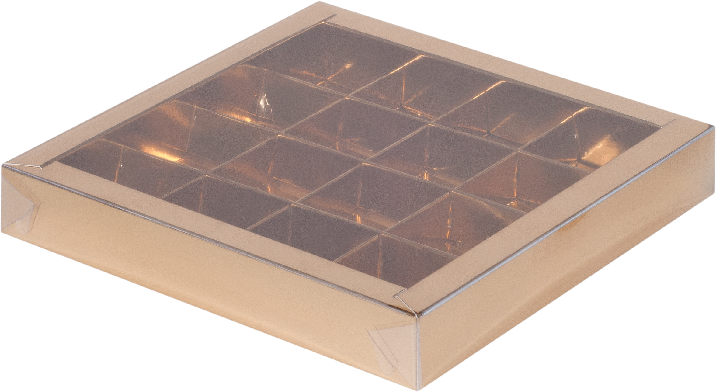Коробка для конфет золотая с пластик крышкой 20*20*3 см (16)