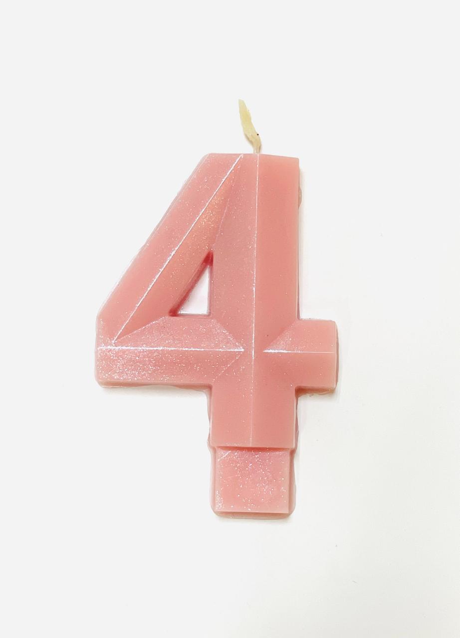 Свеча для торта восковая "Грани", "Цифра 4", розовый перламутр