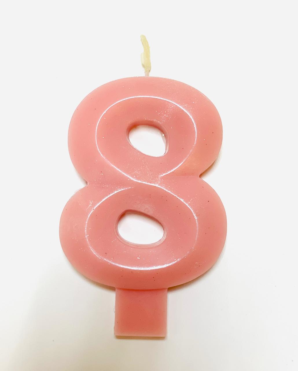 Свеча для торта восковая "Грани", "Цифра 8", розовый перламутр