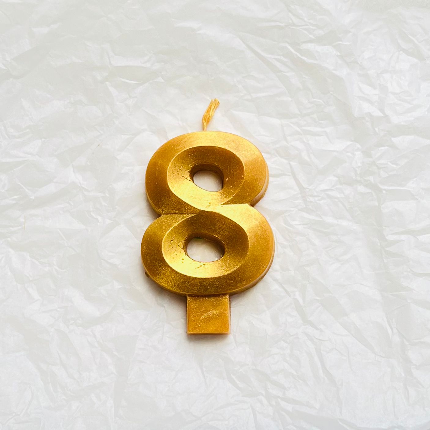 Свеча для торта восковая "Грани", "Цифра 8", золото