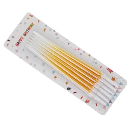 Свечи в торт "Праздник", 6 шт, высокие, 16 см, бело-золотые